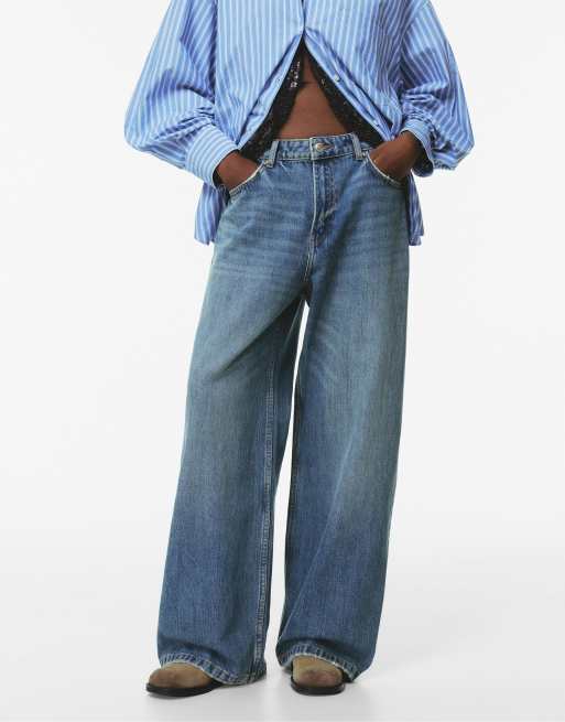 Pull&Bear - Jean baggy à taille mi-haute - Bleu foncé