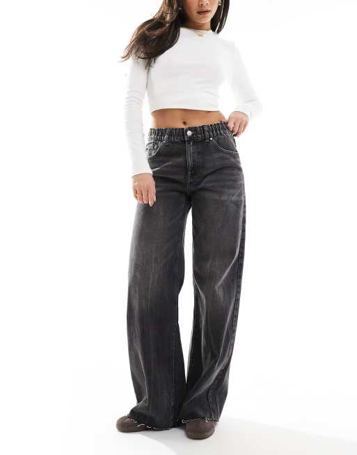 Pull&Bear - Jean baggy ample à taille élastique - Gris délavé