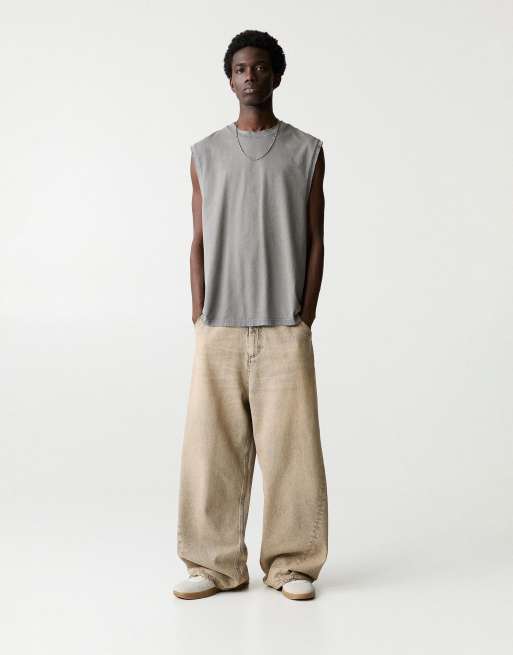 Pull&Bear - Jean baggy super large - Taupe