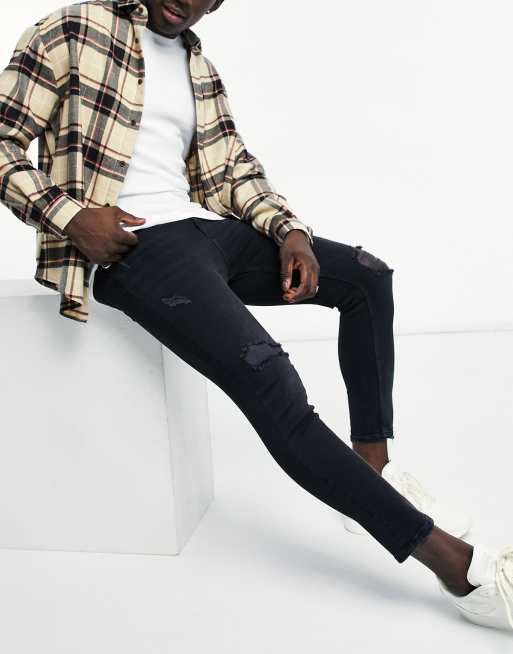Pull&Bear - Jean carotte de qualité supérieure avec déchirures - Noir