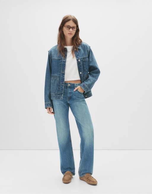 Pull&Bear - Jean droit à taille mi-haute - Bleu-vert