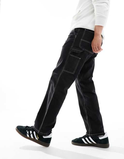 Pull&Bear - Jean style charpentier à coutures contrastantes - Noir