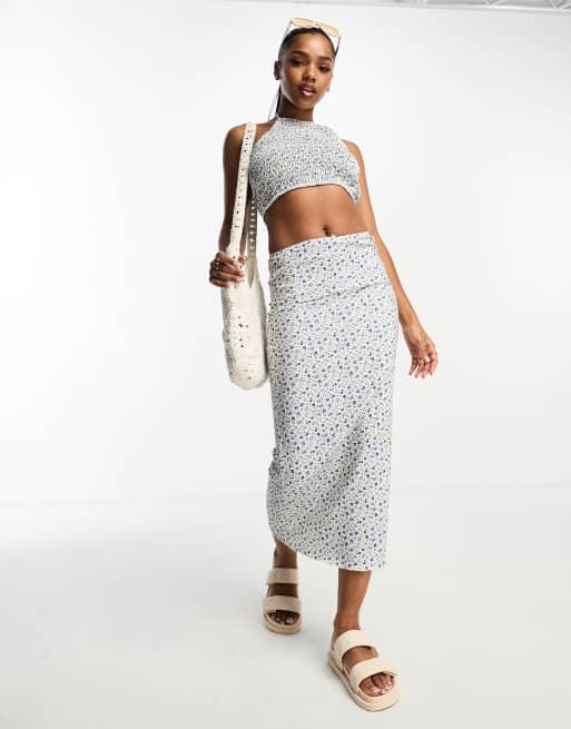 Pull&Bear - Jupe longue d'ensemble à petites fleurs - Bleu