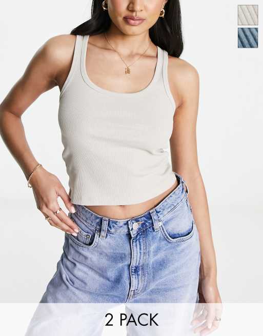 Pull&Bear - Lot de 2 débardeurs - Bleu ardoise et beige