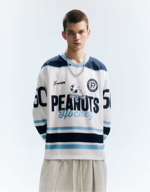 Pull&Bear - Maillot style hockey à motif Peanuts - Blanc cassé