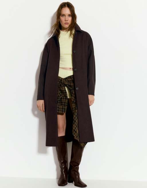 Pull&Bear - Manteau ceinturé en feutre texturé - Bordeaux