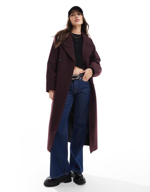 Pull&Bear - Manteau élégant coupe longue oversize en laine mélangée - Bordeaux
