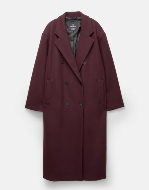 Pull&Bear - Manteau long à double boutonnage - Bordeaux