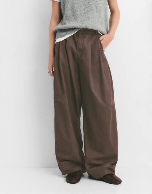 Pull&Bear - Pantalon à pinces bouffant - Chocolat