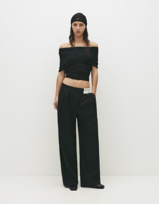 Pull&Bear - Pantalon à taille croisée avec détail contrastant - Noir