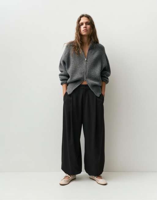 Pull&Bear - Pantalon bouffant à pinces - Noir