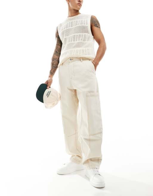 Pull&Bear - Pantalon cargo large style workwear - Écru