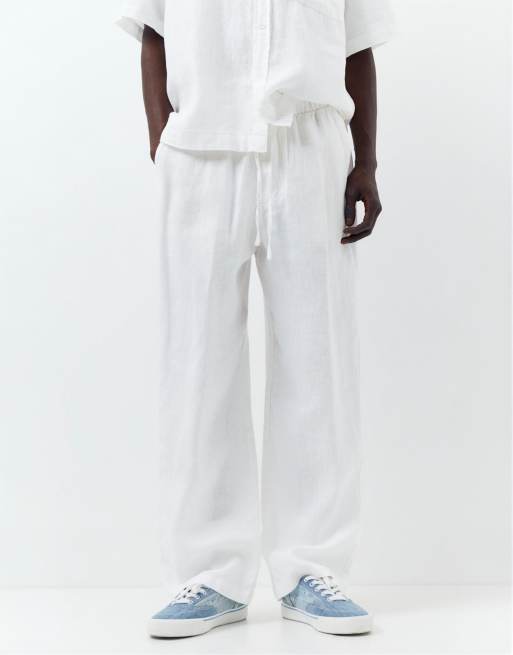 Pull&Bear - Pantalon de jogging en lin - Blanc