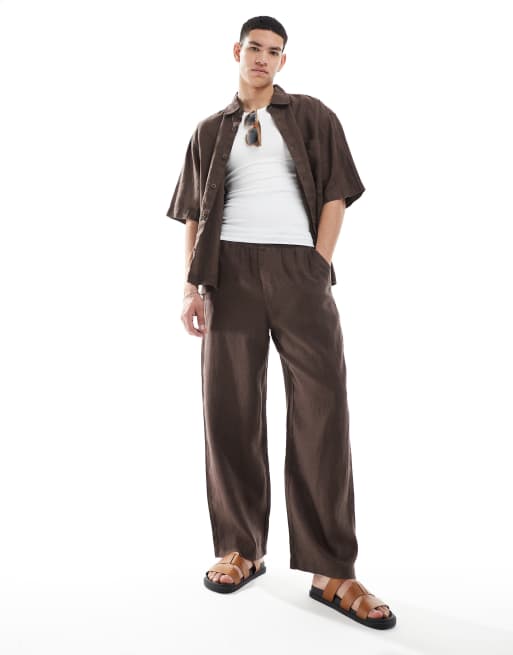 Pull&Bear - Pantalon de jogging en lin - Marron
