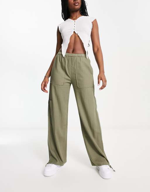 Pull&Bear - Pantalon décontracté en lin - Kaki