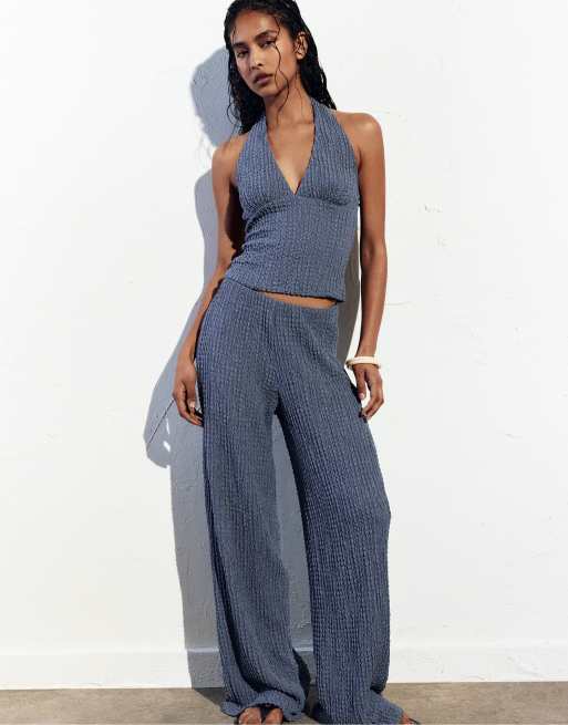 Pull&Bear - Pantalon droit effet froissé - Marine