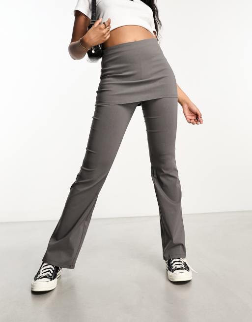 Pull&Bear - Pantalon évasé à détail jupe - Gris anthracite