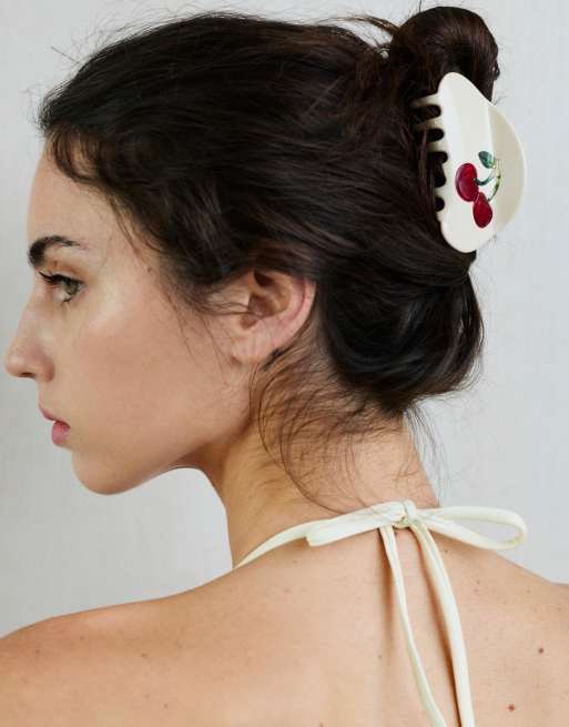 Pull&Bear - Pince à cheveux arrondie avec cerises - Rouge