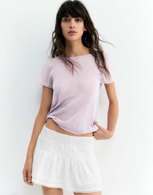 Pull&Bear - Pull à manches courtes avec dos ouvert - Lilas