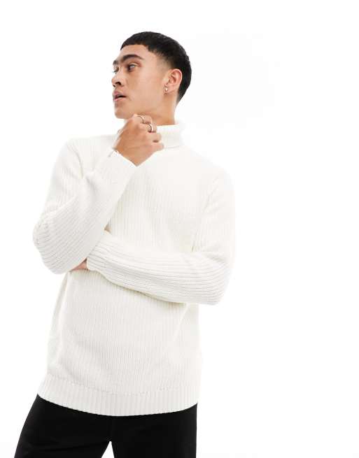 Pull&Bear - Pull col roulé en maille torsadée - Glace