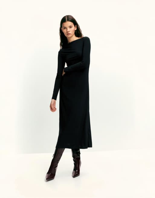 Pull&Bear - Robe drapée mi-longue en tissu doux - Noir