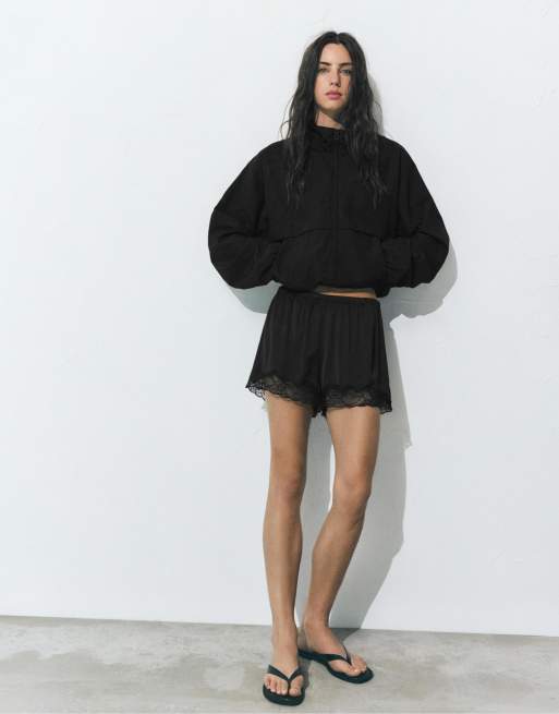 Pull&Bear - Short fluide bordé de dentelle - Noir