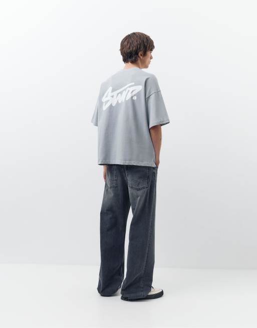 Pull&Bear - STWD - T-shirt coupe carrée à logo - Gris bleu