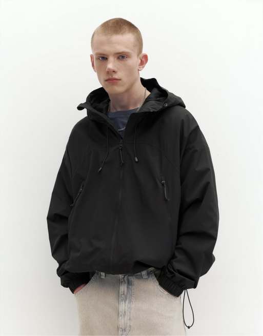 Pull&Bear - STWD - Veste imperméable à capuche légère - Noir