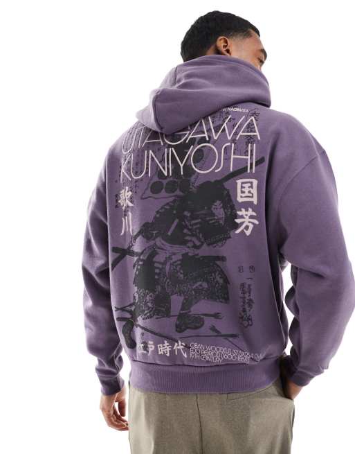 Pull&Bear - Sweat à capuche avec imprimé japonais - Violet