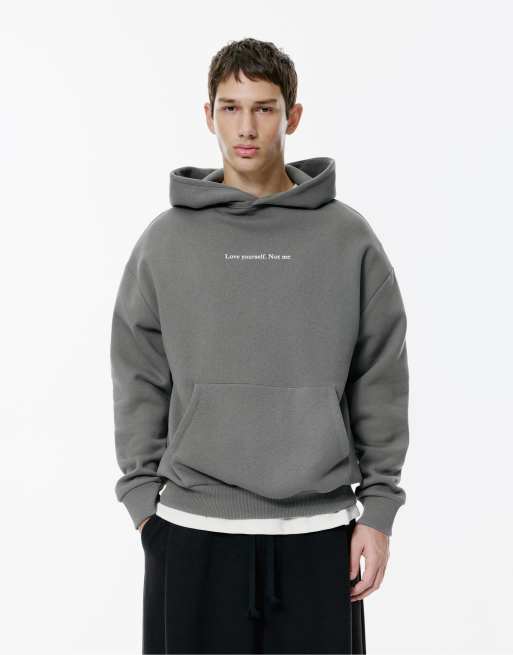 Pull&Bear - Sweat à capuche avec slogan - Gris chiné