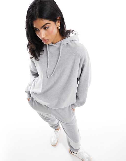 Pull&Bear - Sweat à capuche d'ensemble doux et côtelé - Gris