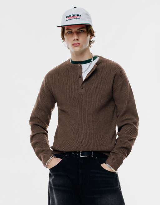 Pull&Bear - Sweat à col boutonné - Chocolat