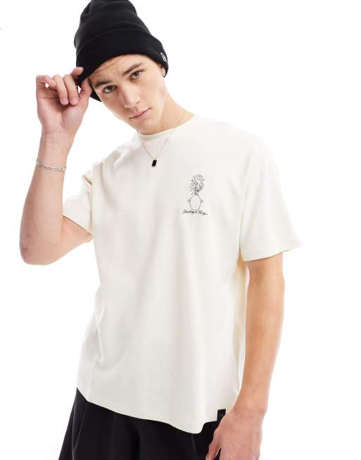 Pull&Bear - T-shirt à imprimé griffonnage - Blanc cassé