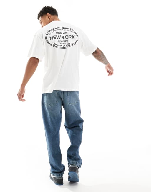 Pull&Bear - T-shirt à imprimé New York - Blanc