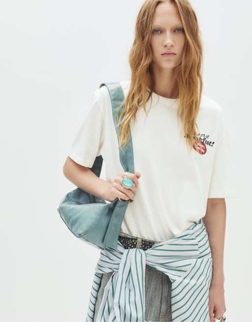 Pull&Bear - T-shirt à imprimé petit-déjeuner - Blanc