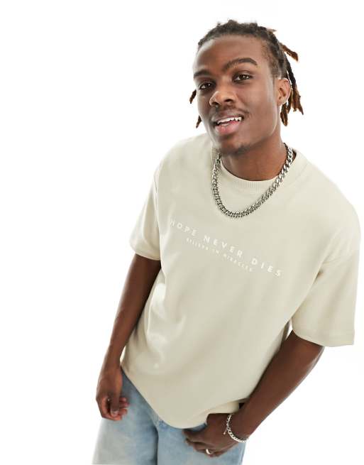 Pull&Bear - T-shirt avec imprimé Hope devant - Sable