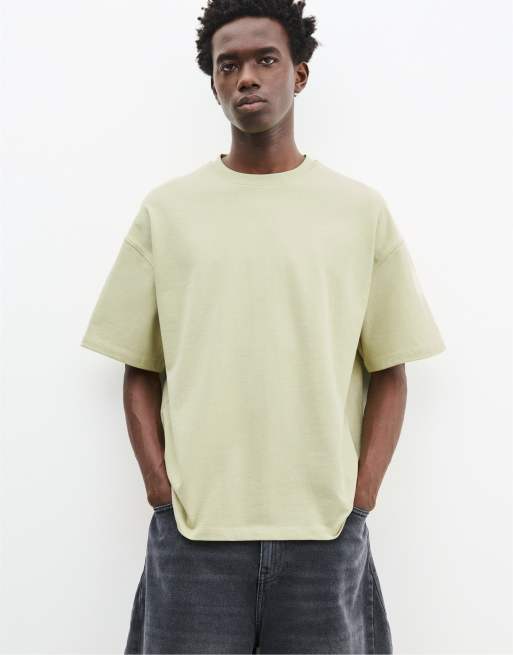 Pull&Bear - T-shirt coupe carrée à manches courtes - Vert