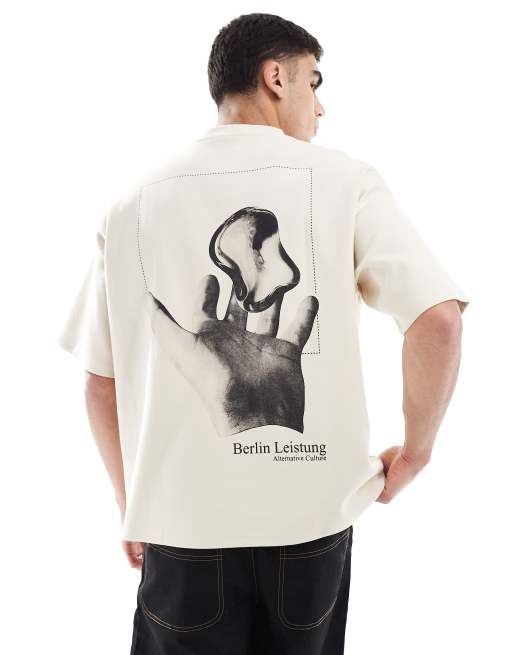 Pull&Bear - T-shirt coupe carrée avec imprimé graphique dans le dos - Blanc