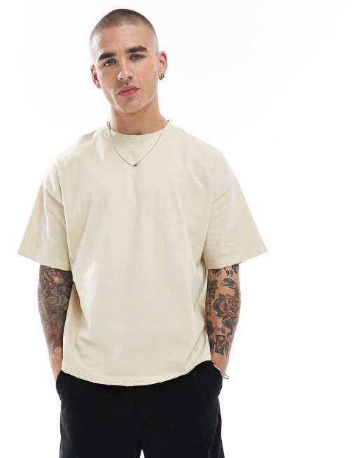 Pull&Bear - T-shirt coupe carrée effet vieilli - Sable