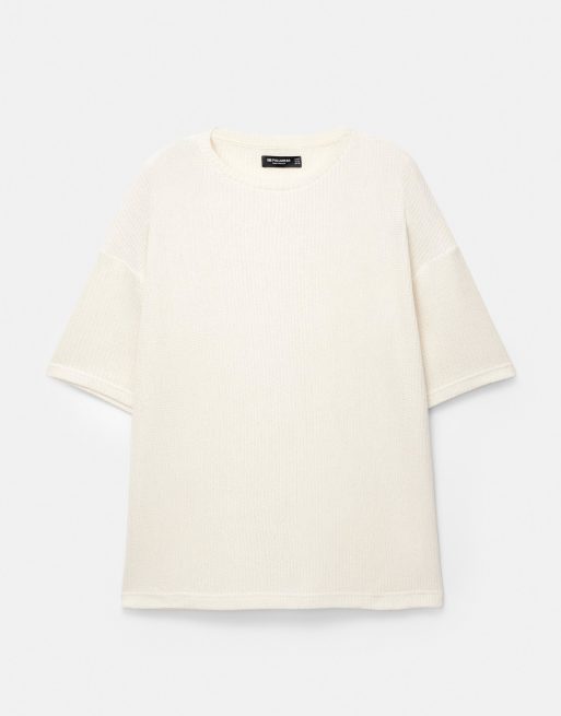 Pull&Bear - T-shirt coupe carrée en maille à manches courtes - Blanc cassé
