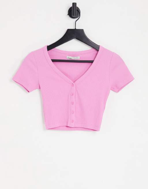 Pull&Bear - T-shirt crop top à boutons - Rose