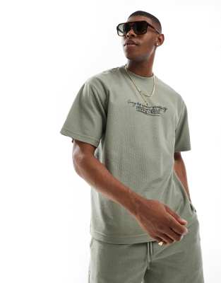 Pull&Bear - T-shirt d'ensemble à slogan - Vert