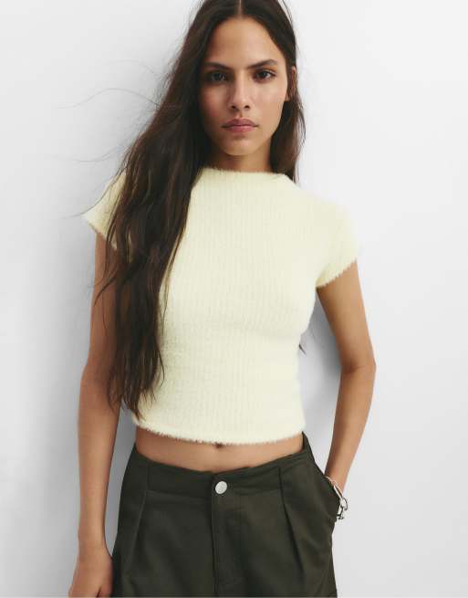 Pull&Bear - T-shirt en tissu doux et texturé - Vanille