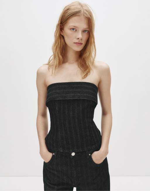 Pull&Bear - Top bandeau à fines rayures - Noir