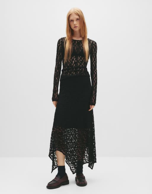Pull&Bear - Top en dentelle à dos ouvert - Noir