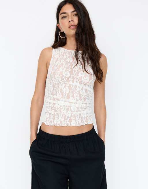 Pull&Bear - Top en dentelle froncé sur les côtés - Beige