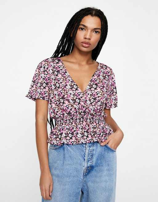 Pull&Bear - Top plissé à fleurs - Rose fleuri
