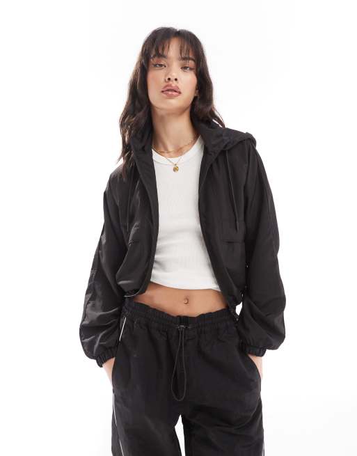 Pull&Bear - Veste à capuche aspect nylon coupe carrée - Noir