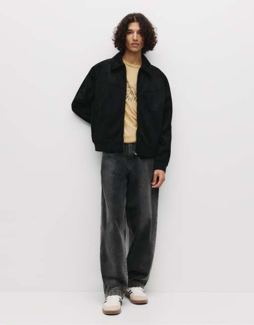 Pull&Bear - Veste camionneur en imitation daim - Noir