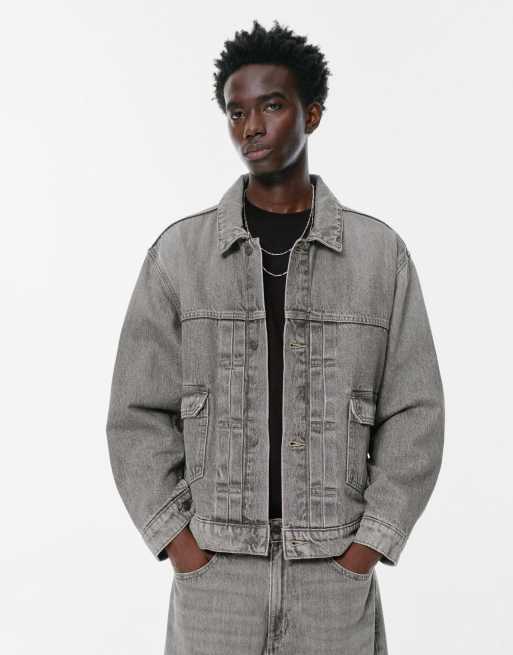 Pull&Bear - Veste en jean avec poches - Gris foncé